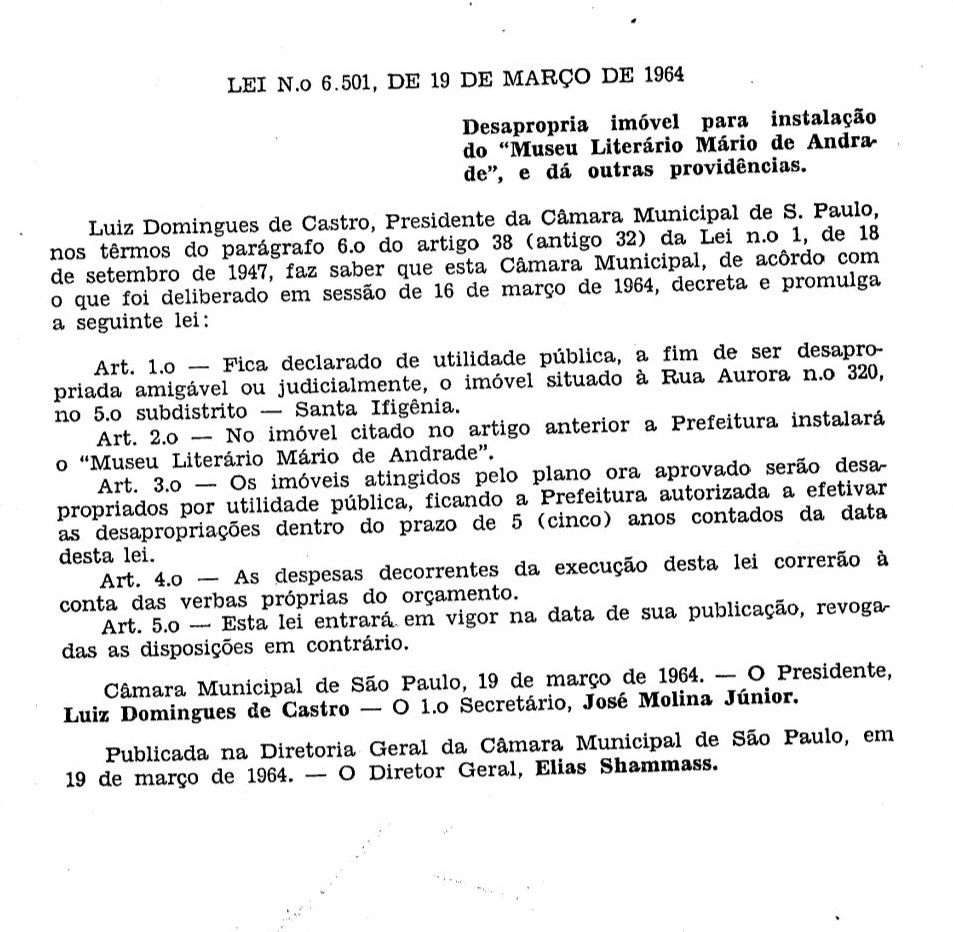 A Lei foi vetada pelo Prefeito Prestes Maia em 1964, que alegou não dispor de verbas para tal proposta. Na verdade o veto do Prefeito acabou por envitar um erro histórico, de criar um Museu no local errado de nascimento do célebre escritor.