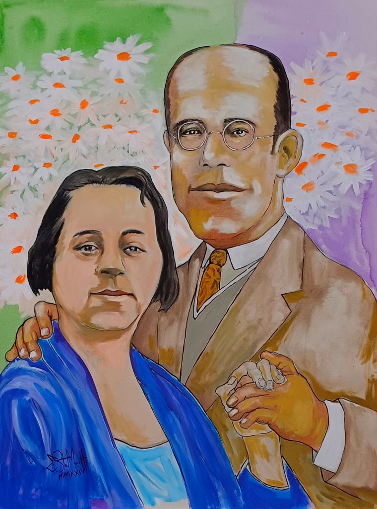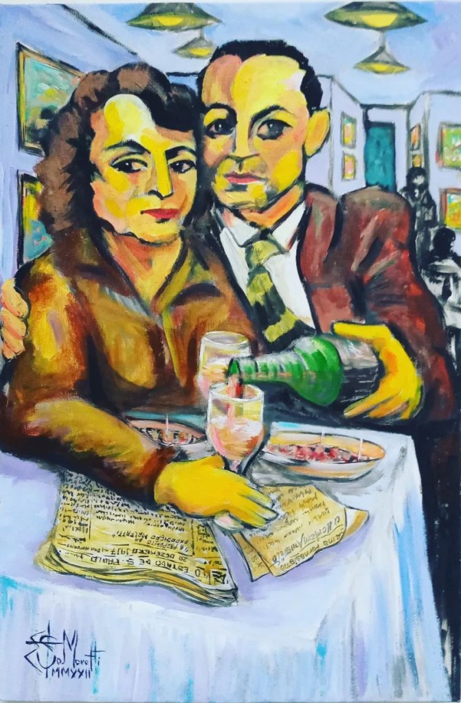 OBRA N°13 ☝️- “MÁRIO E ANNITA EM 1929” – Acrílica S Tela – 80cmx60cm – Produzida em 2023