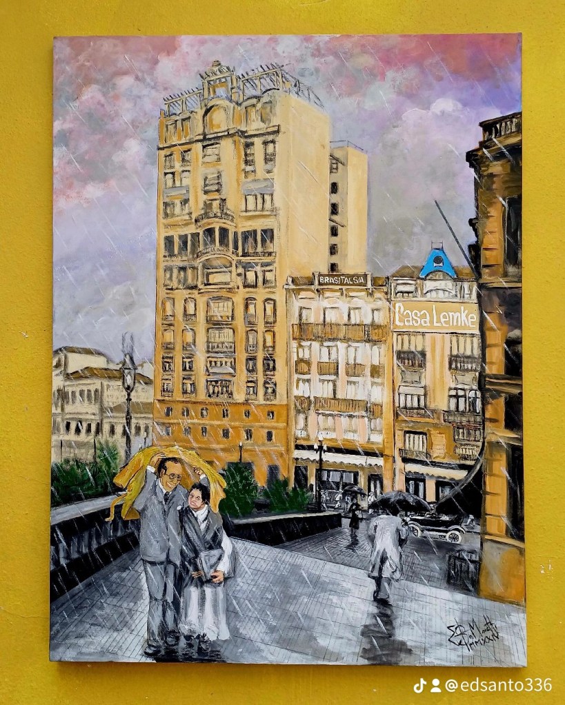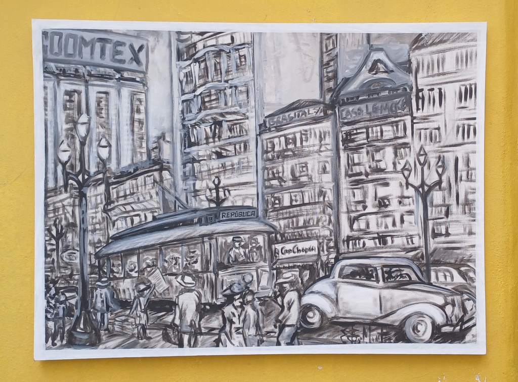 OBRA N°14 ☝️- “Rua Líbero Badaró em 1943” Acrílica S Tela – 60cmx80cm – Produzida em 2024