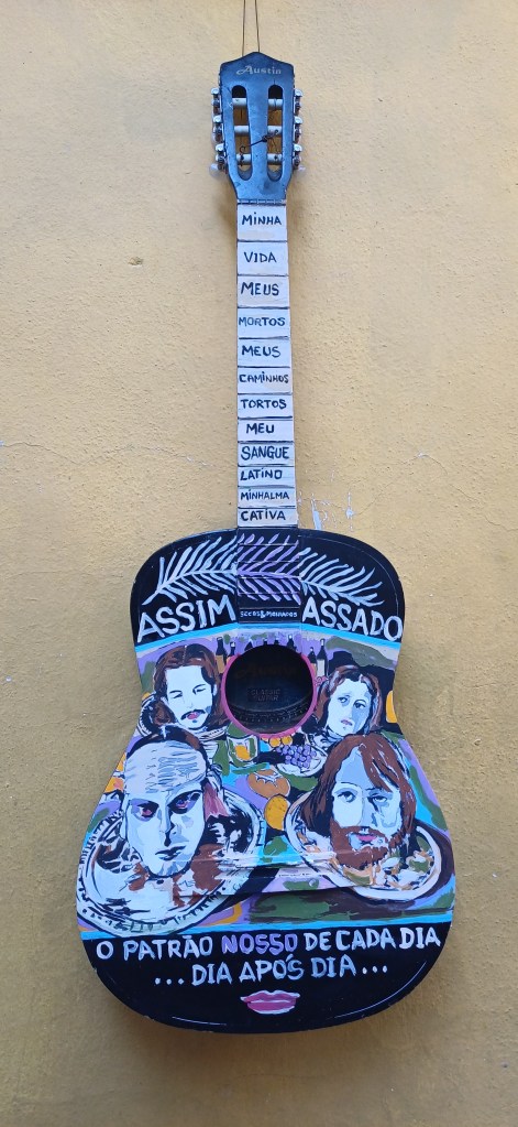 Os VIOLÕES VIOLADOS estão expostos nas paredes do Restaurante Pirandello Santa Clara de Segunda a Sexta-feira das 08 às 22Hs .RUA LÍBERO BADARÓ, 324-332 – Centro Histórico de São Paulo.
