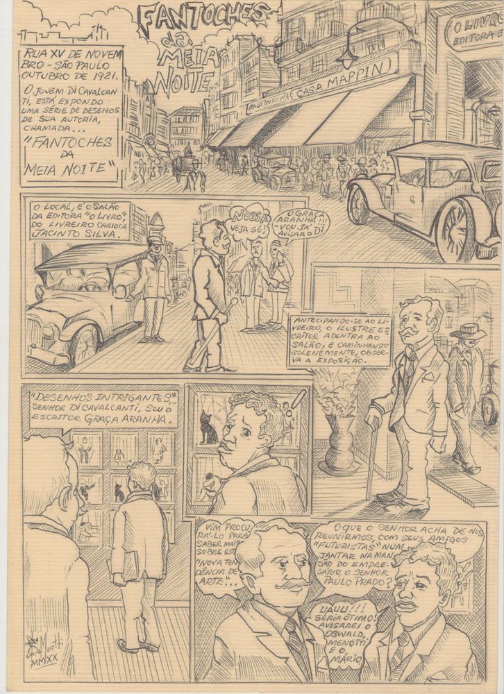 Em novembro de 1921, o ainda Jovem Di Cavalcanti está exibindo uma “curiosa” coleção de Desenhos, intitulada, FANTOCHES DA MEIA NOITE.