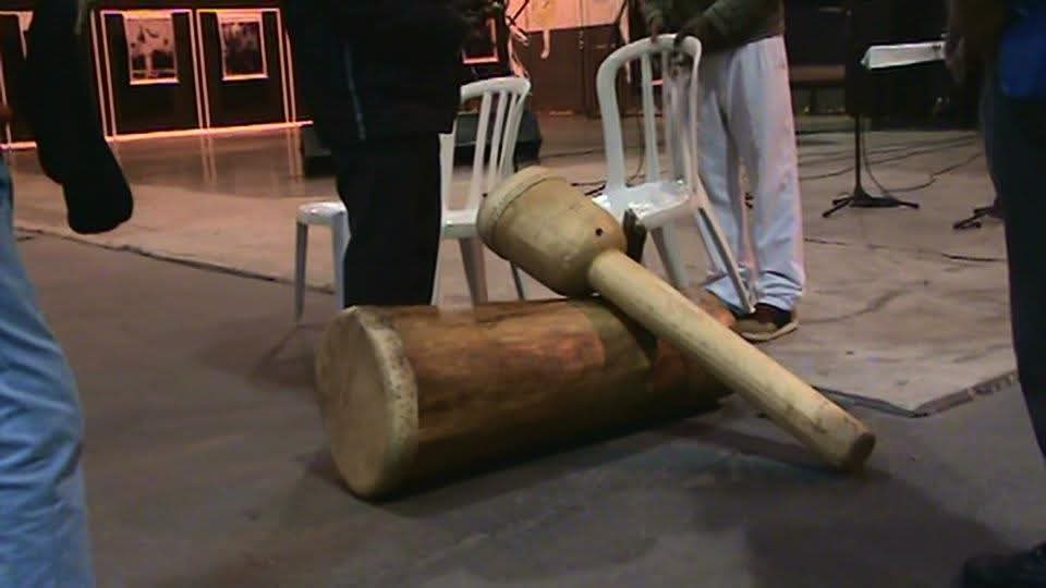 MATRACAS – As matracas são duas madeiras (varas de 60cm) roliço que batidas sobre o tronco do Tambu emitem um som de “marcação do ritmo da dança e da cantoria.
